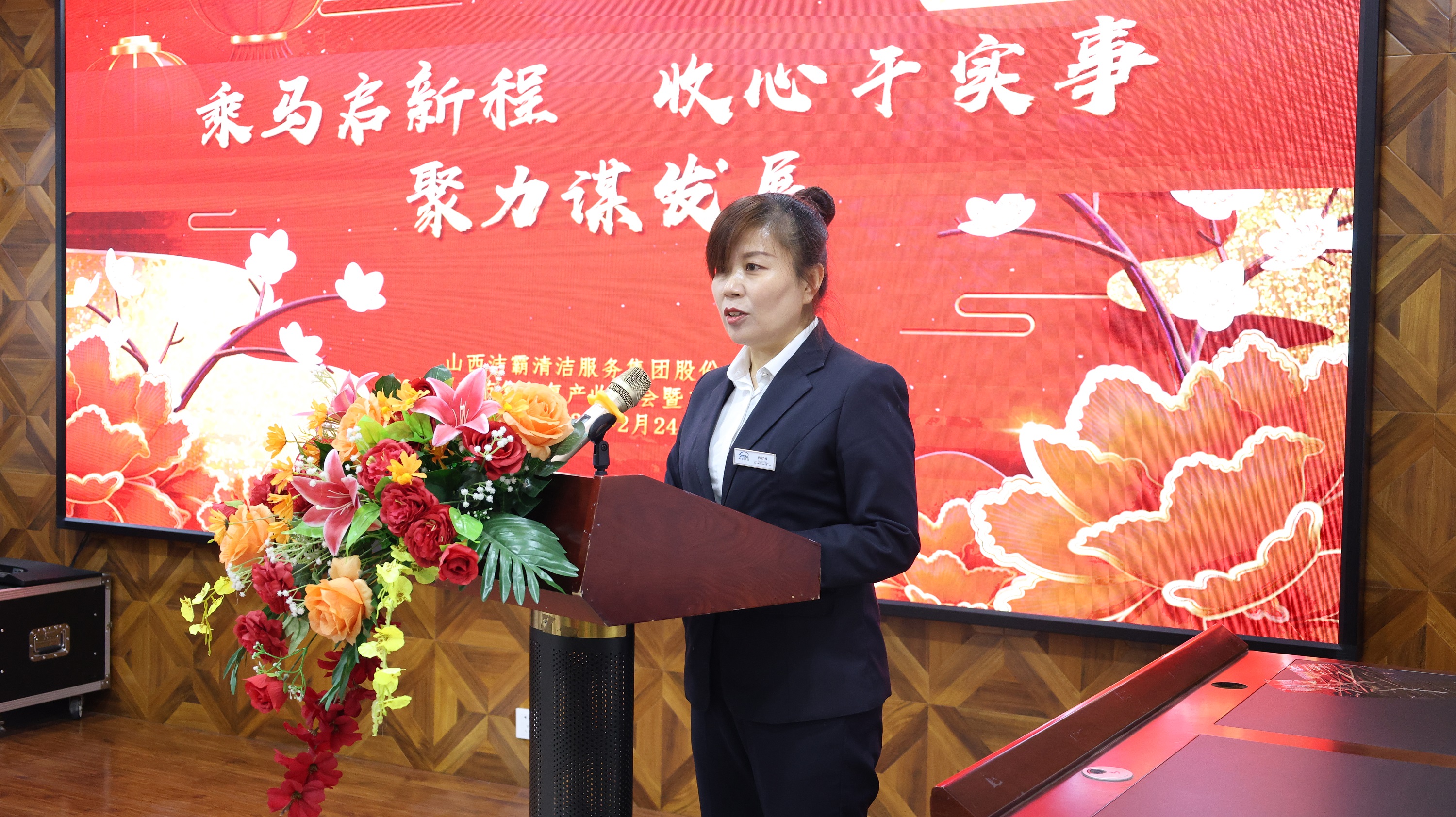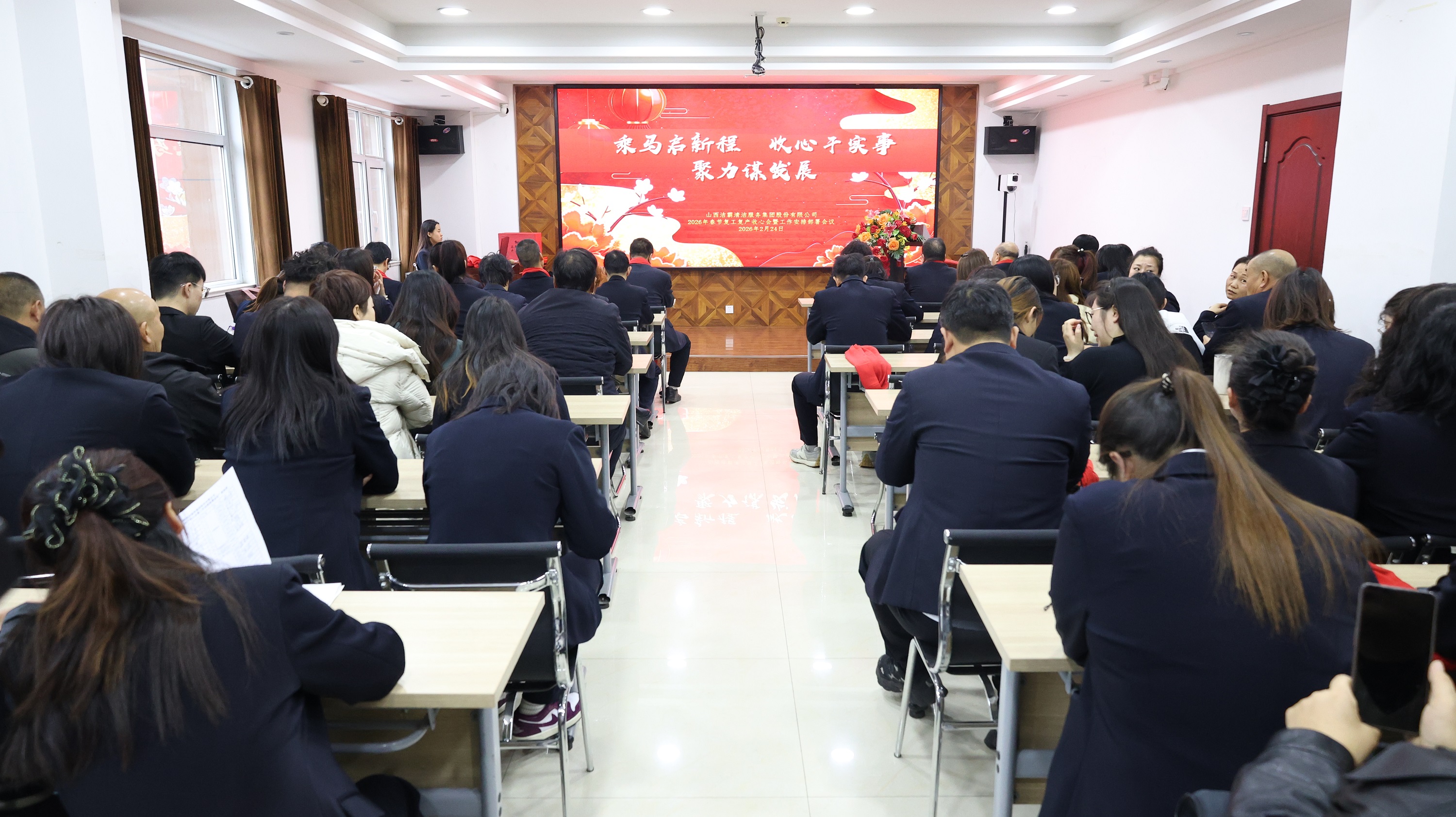 會議召開前,山西潔霸物業(yè)、合眾力勞務(wù)派遣、辦公室、保潔部、百潔物業(yè)、潔霸超市、潔霸洗業(yè)、財務(wù)部、清洗一部、清洗二部、清洗三部、運(yùn)營中心、職業(yè)培訓(xùn)學(xué)校、人力資源部、智能科技等子公司和部門分別登臺展示團(tuán)隊士氣和精神風(fēng)貌,集中展現(xiàn)2026年的奮斗目標(biāo)和決心,凝聚團(tuán)隊向心力。